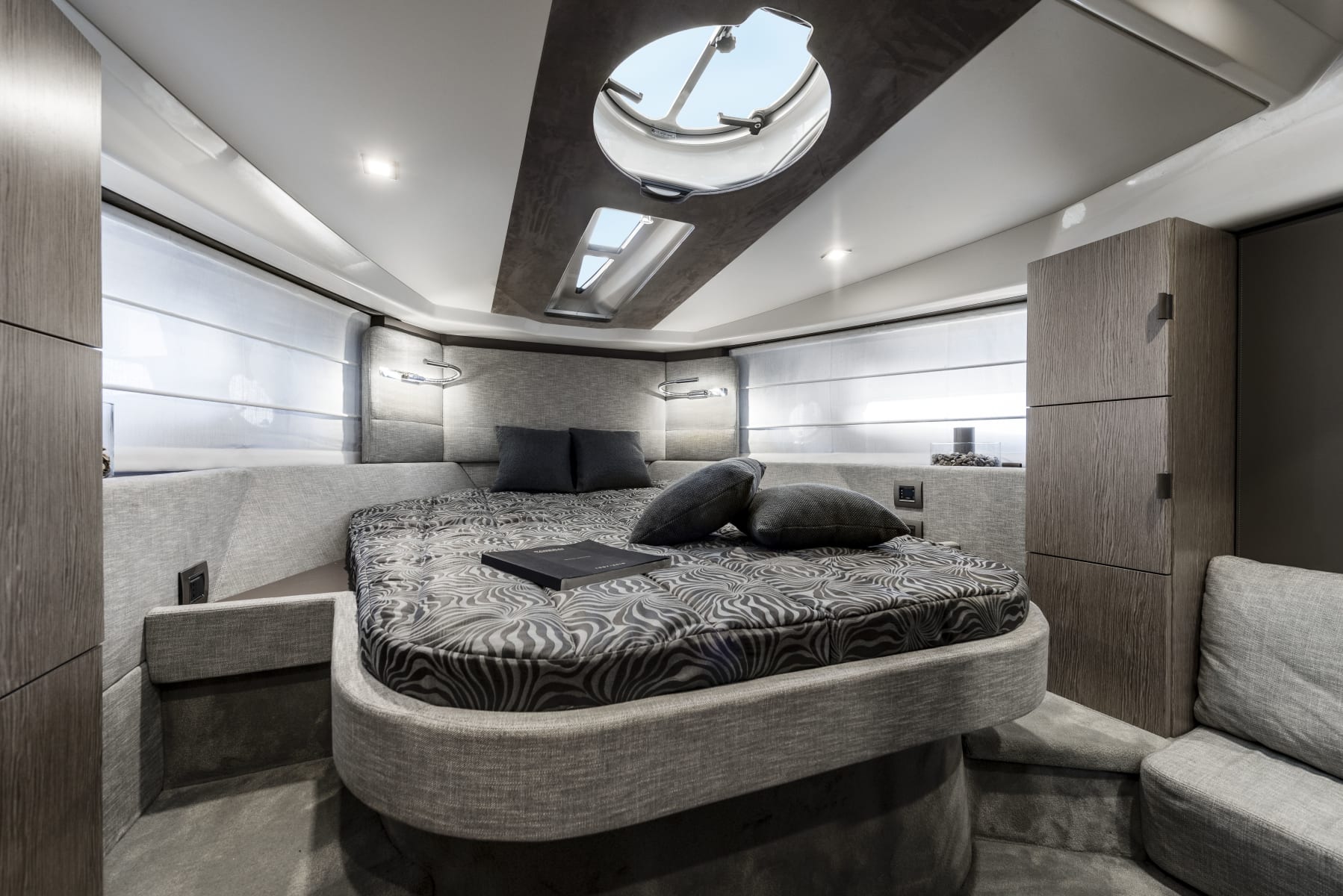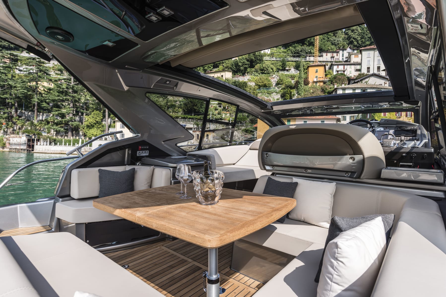 Its sporty yet refined design includes a sleek hardtop with a retractable sunroof, allowing you to enjoy both shade and sunshine at your convenience. The spacious cockpit is perfect for socializing, while the large sunbeds and outdoor lounge areas provide a premium relaxation space. Inside, the high-end finishes and modern amenities ensure a five-star experience on the water. With advanced joystick controls, maneuvering and docking are effortless, making your time on board stress-free and enjoyable.