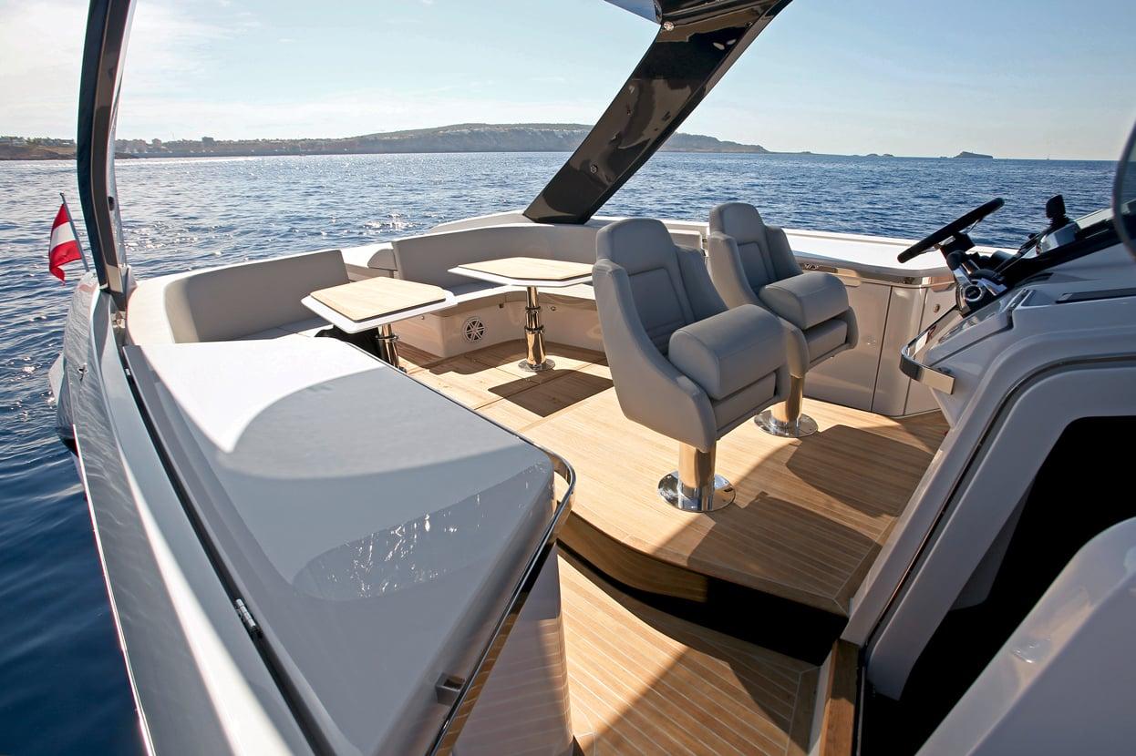 Its sleek design and modern look make it a true eye-catcher. The spacious deck provides breathtaking views of the Riviera. Relax under the sun, sip a refreshing drink at the yacht’s bar, or unwind in complete tranquility. Every moment on board is an immersion in luxury.