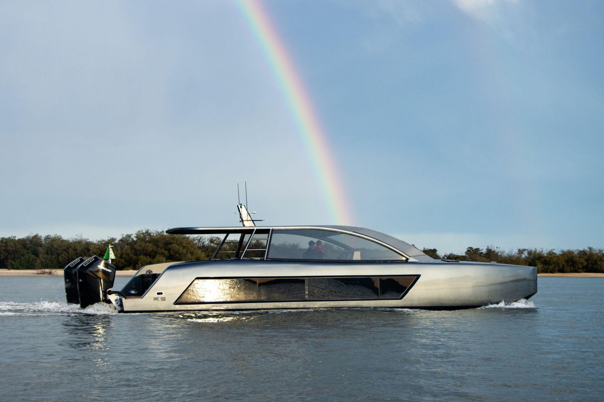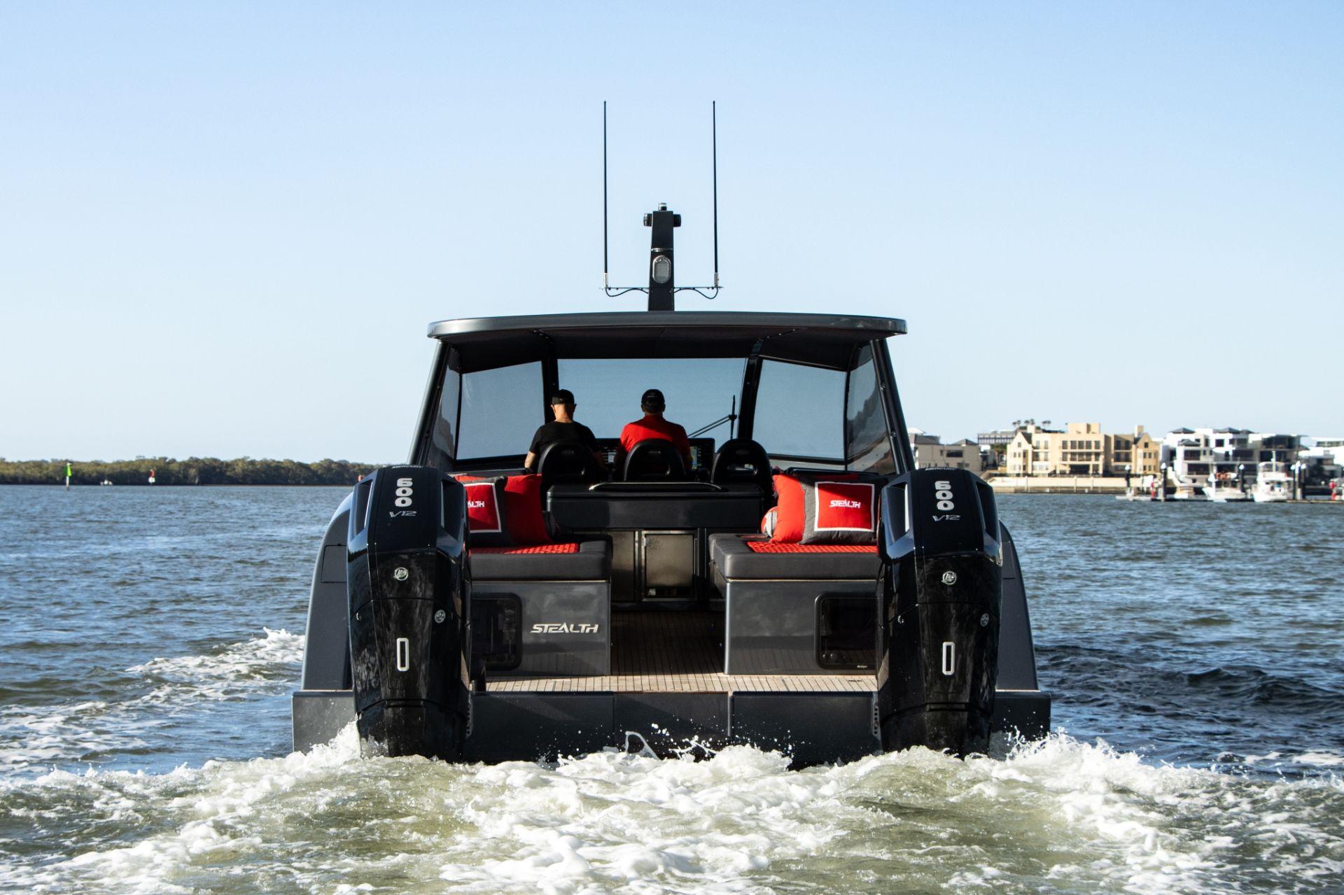 The Stealth 50 is an exceptional Australian-made catamaran that combines performance with luxury. Its sleek, aggressive lines, inspired by offshore racing boats, deliver an unforgettable sailing experience. Powered by twin 600 hp Mercury Verado V12 engines, the Stealth 50 offers impressive power and smooth handling. The two-speed transmission and duo-prop propellers provide outstanding speed and efficiency, ensuring both thrill and comfort.